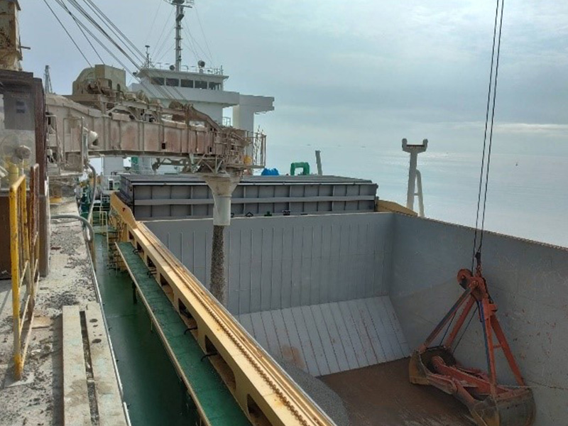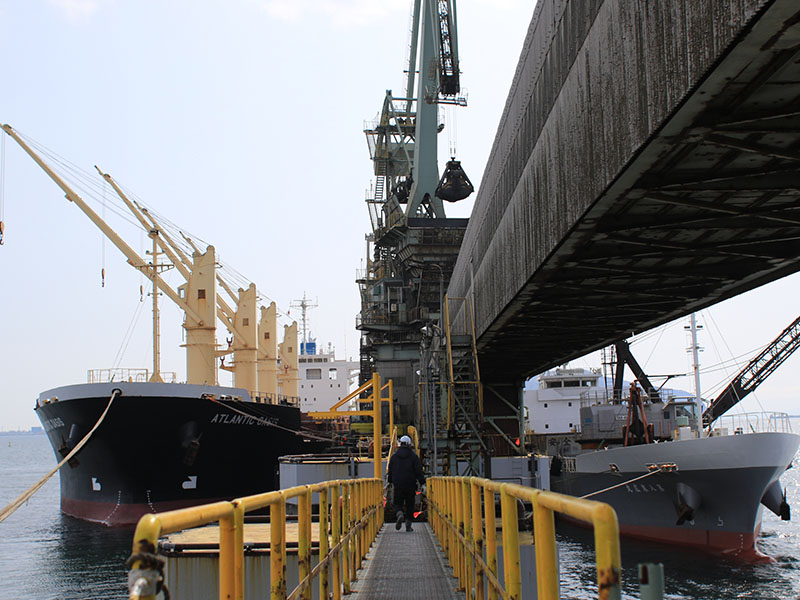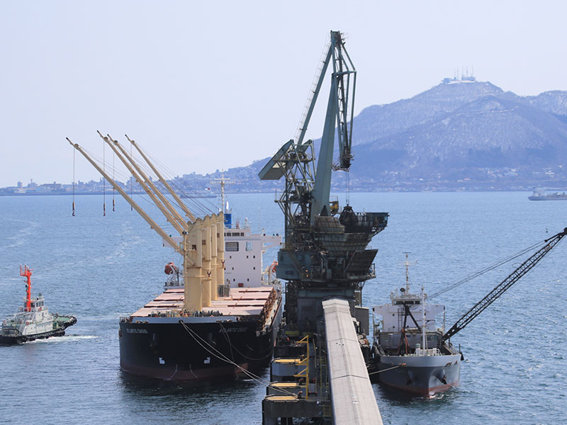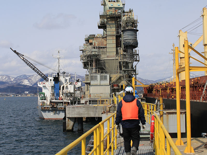 仕事内容としまして、船にセメントや砕石を積込む操作、セメントの原料や燃料になる荷物を船からクレーン及び重機を使用しての荷揚げ、運転設備のメンテナンスを行う作業となります。