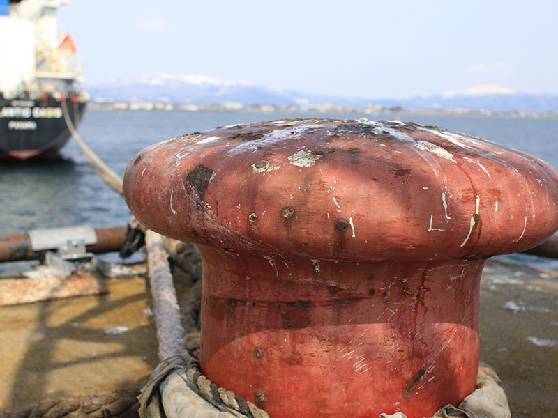 - ④ クレーンで荷揚げ終了後、船を岸壁から放す。